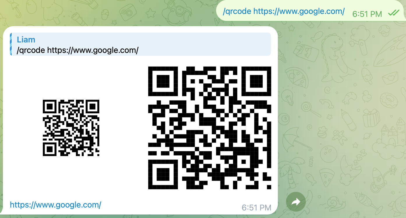 The /qrcode command can be used in both group chats and private messages to quickly convert text or URLs into a QR code