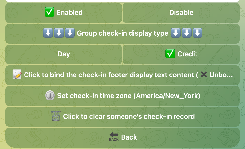 群签到功能支持丰富的功能设置, 你可以为您的群设置专用时区, 比如纽约时间, 华盛顿时区, 在群组内签到即可按此时区进行签到